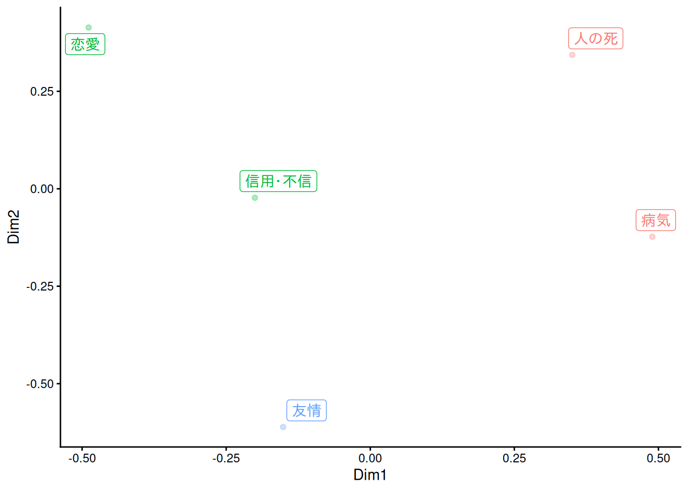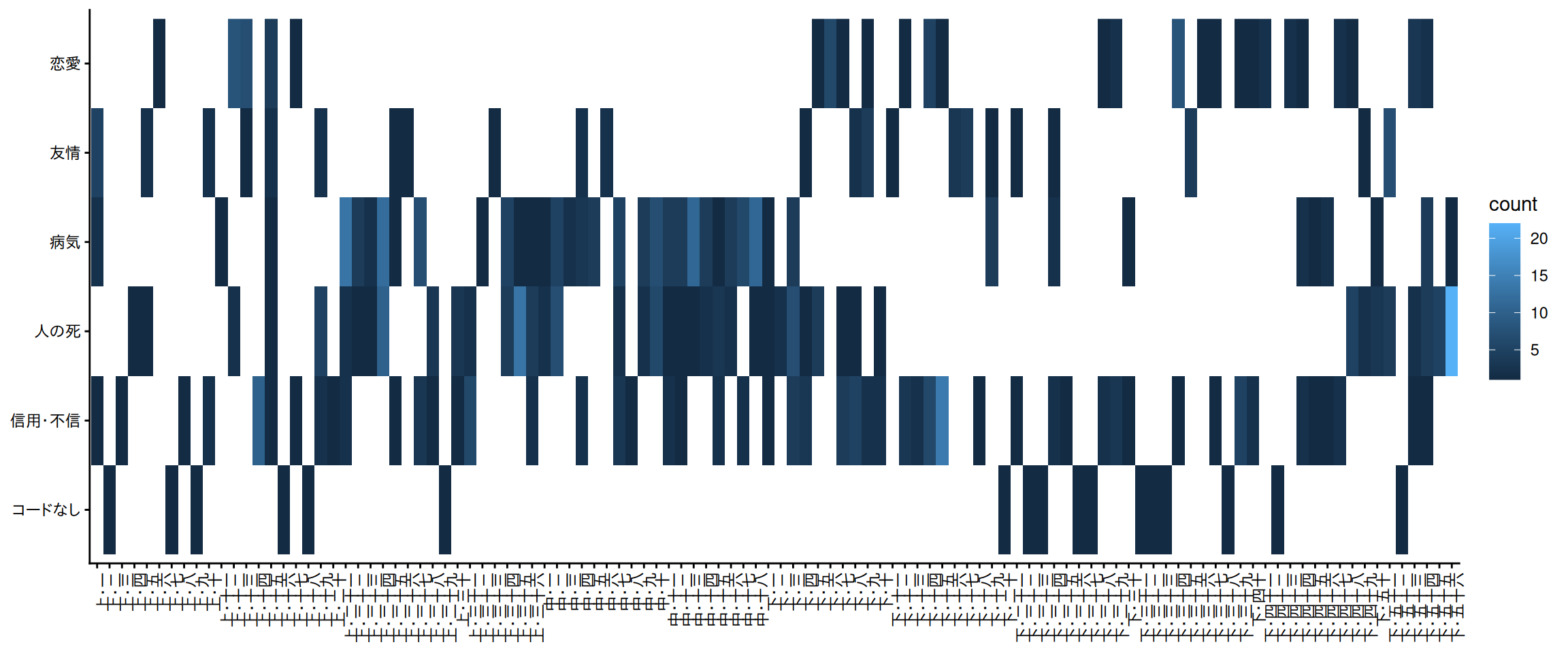 #> 人の死 恋愛 友情 信用・不信 病気